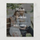 A modern and trendy all-in-one photo wedding invitation displaying your wedding information over one of your favorite pictures with a black transparent overlay and accented by an elegant white script, but with one eye on the budget.