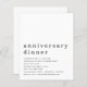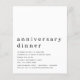 Budget Black White Anniversary Dinner Invite. A budget price SMALLER 4.5” x 5.6” alternative. Available in a SEMI-GLOSS 110 lb CARD STOCK which is the default option (thicker for invitations), OR a SATIN FINISH 80 lb THINNER PAPER STOCK (ideal for enclosures). Envelopes are an optional extra and are slightly larger than the card size. The header is large in stylish lowercase with the details beneath. Lots of white space at the top for a contemporary feel! Easily personalise the text to your own details.
