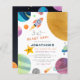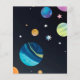 Let's celebrate the birthday boy! This planet-themed birthday invitation is perfect for any little one crazy about outer space! The budget invite features different brightly colored planets, a rocket ship, a UFO, and stars. The text reads "3,2,1... Blast off!" with your child's name in big futuristic capitals. Your child's birthday appears in the yellow star. Customize with your event details and add an extra little note at the bottom in a hand-written font. This cute and colorful invitation is perfect for any fun-filled party. Easily customize for a little girl or gender-neutral look. The reverse features a dark blue galaxy image with planets in orbit. As part of the budget selection on Zazzle, this sheet isn't a standard invite size or paper quality. If you want this design on an invitation card you can find it in our store or use the Zazzle Make Machine to transfer it onto the product of your choice. Feel free to message me for any design-related queries, any help customizing, or any custom order you have in mind! Check out the collection link below for matching items!
