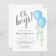This budget twin boy's Baby Shower Invitation is decorated with watercolor blue balloons and green eucalyptus and says "Oh Boys!"