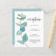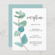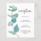 Budget Blue Eucalyptus Wedding Reception Details. A budget price SMALLER 4.5” x 5.6” alternative. Available in a SEMI GLOSS 110 lb CARD STOCK which is the default option (recommended for invitations), OR a SATIN FINISH 80 lb THINNER PAPER STOCK (ideal for enclosures). Envelopes are an optional extra and are slightly larger than the card size. Modern elegance for your reception details with a branch of eucalyptus leaves running up the left hand side, and set typography in black for the main heading complementing the rest of the text which you can easily personalise.