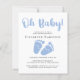 Cute and budget-friendly baby boy shower invitation with "Oh Baby!" in a pastel blue script and a coordinating watercolor of baby feet. You can easily personalize the shower details.