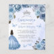 Budget Blue Floral QR Code Quinceañera Invite