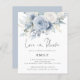 Budget Dusty Blue Florals Love in Bloom Bridal Shower. A budget priced size 4.5 x 5.6” 110lbs semi-gloss, similar in thickness to a postcard. There is ONE per sheet. Beautiful florals in summery light blue colors, flow down from the top. Love in Bloom is in a set handwriting style script. Easily personalise the rest of the text to your own details.