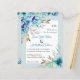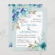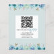 BUDGET blue watercolor flowers floral mint green wedding invitationwith QR code for RSVP. It showcases bouquets of flowers in blue and mint green tones on the corners while your text is placed in a white frame with a border. The back includes floral garlands on the upper and bottom parts and the QR code for guests to scan and reply.