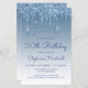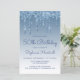 This glamorous 50th birthday party invitation features a sparkly blue faux glitter drip border and blue ombre background. The editable birthday year and the name of the guest of honor appear in casual blue handwriting script, with the rest of the customizable text in blue sans serif font. The same blue glitter drip design appears on the reverse side. (NOTE: Envelopes are not included automatically with this budget invitation. To add envelopes to your order, please use the "Envelopes" drop-down menu.)