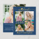 A budget-friendly, modern blue and gold graduation announcement printed on 4.5x5.6" lightweight paper instead of cardstock featuring faux metallic gold calligraphy script typography and graduation cap and personalized with 5 photos (a photo collage of 4 pictures on the front and 1 on the back) against an editable black background color you can change to a school color or favorite color. The class year is editable for other years. The back side features a full-bleed photo and an optional text field for your custom text with details about your graduate. Ideal for conservative budgets and/or hand delivering. Envelopes sold separately on the ordering page. ASSISTANCE: For help with design modification/personalization, color change, transferring the design to another product or if you would like coordinating items, contact the designer BEFORE ORDERING via Zazzle Chat or makeitaboutyoustore@gmail.com.