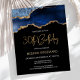 This trendy 30th birthday invitation features a watercolor image of an agate geode in shades of blue with faux gold highlights. The words "30th Birthday" appear in faux gold glitter in decorative modern handwriting font. Customize it with the name of the honoree in gold colored text and the details in white. The same blue agate image appears on the reverse side.