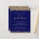 PLEASE NOTE There are two paper options to choose from for this size (4.5 x 5.6”) in the Budget range. For this product, I would recommend the semi-gloss which is a 110 gsm card stock, similar in thickness to a postcard. The Satin option is a much thinner paper 80gsm. The default is set to semi-gloss. NOTE there is ONE per sheet. Budget Navy Blue Gold Glitter Graduation Invitation. Elegant gold faux glitter confetti borders are at the top and bottom and also on the back. Graduation is set in a modern handwriting style. Easily personalise the rest of the text to your own.