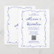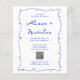 Budget Modern Whimsical Blue Hand Drawn & Handwriting Font Monogram QR code Wedding Invitation.