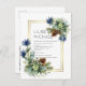 Blue Thistles, Pine cones, Eucalyptus leaves, winter wonderland wedding themed wedding invitation , part of a larger collection which includes invitations save the dates rsvp's bridal party gifts etc. For Christmas or winter wedding planning guide theme ideas and more visit weddingdesignchic.com.