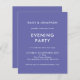 A value for money BUDGET alternative on a smaller size 4.5 x 5.6” semi-gloss 110lbs weight, which is of similar thickness to a postcard (however is not suitable to use as a postcard.). PLEASE NOTE there is ONE invite per sheet. Simple Blue Wedding Evening Party Invite. On a background of periwinkle blue violet. Easy to personalize the text to your details and change colors of typography and background on each side if you wish can be changed to any or your choice via the customize further option.