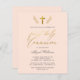A modern, simple, elegant faux gold foil first holy communion invitation with gold calligraphy and Christian cross at the top with branches around it on a blush pink background. As part of the budget selection here on Zazzle, these invitations come in limited sizes and paper stocks. If you need a different size or paper stock, this design can be transferred to a standard 5x7 format using the design transfer tool for more options.