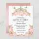 Elegant Glam Blush Pink Floral Gold Tiara Quinceanera Invitation