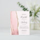 The left-hand edge of this elegant modern wedding invitation features a blush pink watercolor agate border trimmed with faux gold glitter. The customizable text combines handwriting, copperplate and italic fonts in charcoal gray on a pale blush background. The reverse side features a matching blush and gold agate design. NOTE: Envelopes are not automatically included with these budget invitations, so please remember to choose the "white envelopes" option!