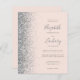 The left-hand edge of this elegant modern wedding invitation features a silver faux glitter border. The customizable text combines gray handwriting, copperplate and italic fonts on a blush pink background. Add additional details on the back, along with a QR code to help your guests visit your wedding website.