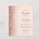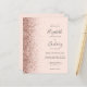 The left-hand edge of this elegant modern wedding invitation features a rose gold faux glitter border. The customizable text combines charcoal gray handwriting, copperplate and italic fonts on a blush pink background. The reverse side provides space for wedding details on a solid blush background, along with a QR code guests can scan to visit your website and RSVP, which saves the cost of printing and mailing separate RSVP cards. NOTE: Envelopes are not automatically included with these budget invitations, so please remember to choose the "white envelopes" option!