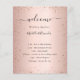A modern, elegant wedding program, timeline. Blush, rose gold colored background decorated with faux glitter dust. Personalize and add your names and wedding details. Black colored letters. If you have more text it's possible to reduce the line space.