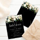 Elegant blush pink and white roses look beautiful against the black background. White calligraphy and text really pop!