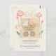 Cute Boho flowers and baby buggy are a budget friendly way to invite guests to a Coral, Peach, and Sage themed baby shower. personalize and customize the text to reflect your own details. Change font colors if you wish, and add the message you want on the reverse side.