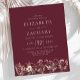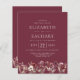 A boho botanical design featuring a bottom border of watercolor burgundy wildflowers. Easily edit the ivory text on a burgundy background. A matching floral border design appears on the back of the card.