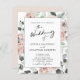 Budget All in One with Details Modern Calligraphy Dusty Rose Boho Floral Wedding Invitation... Our affordable "front and back" boho roses and calligraphy wedding invitation features an arrangement of lush dusty pink roses and eucalyptus greenery framing your wedding text in modern calligraphy and elegant serif typography. The back of the invitation contains all of the details you would typically see on separate cards in the wedding packet, including reception time and venue, accommodation options, wedding website, RSVP and gift registry information. This modern style wedding invitation was designed to be both elegant and budget conscious... as well as time-saving. The example QR code and all example text (aside from the graphic calligraphy elements) can be easily revised with your own information on the personalization template.