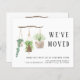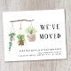 Simple and budget-friendly moving announcement featuring boho watercolors of hanging house plants and minimal modern typography. On the front, you can personalize with your family or first name, the "Hang Out With Us At Our New Home" text and your new address. On the reverse side you can personalize your announcement in more detail and include a telephone number and email if desired.
