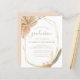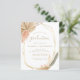 This trendy boho graduation party invitation features a gold geometric frame decorated with watercolor dried tropical palm leaves and pampas grass in shades of beige, peach and muted green. Customize the gold-colored text with your party details. The reverse side is a coordinating shade of solid peach-tinted beige.