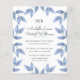 Card reverse to a matching periwinkle blue color for additional informations as rsvp, wedding website, registry wedding details and more.