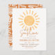 Our little ray of sunshine is on the way! This boho and budget design displays a watercolor sun illustration filling the top of the card with the event details below in chic typography. The mom-to-be's name, "sunshine", the date, and the registry information are all written in a rust orange color with the rest of the text in a warm brown tone. The back of the card features the same terracotta orange color with an abstract pattern of organic brush strokes. This bohemian design with a happy yellow and orange color scheme is perfect for both boy and girl baby showers. Sun-themed gender-neutral baby shower invitations for spring or summer events. Matching themes include "here comes the sun", "you are my sunshine", "ray of sunshine", and rainbow baby showers. This invitation template is editable online: click on "Personalize this template" and type your text into the boxes provided. For more advanced changes scroll to "click to customize further" and access Zazzle's Design tool to choose custom colors, change fonts, edit placement, and more! As part of the budget selection on Zazzle, this sheet isn't a standard invite size or paper quality. If you want this design on an invitation card you can find it in our store or use the Zazzle Make Machine to transfer it onto the product of your choice. Please note the cards are printed as you see them on your screen when ordering, so be sure to double-check for typos! Other invitation options are available in the collection on this page below the product image. Browse my store for more sunshine baby shower invitations.
