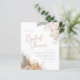 Boho bridal shower invitations. This lovely & budget bridal shower invite features two organic arrangements of hand-painted watercolor florals and pampas grass. In the top right-hand corner, there are light green palm leaves, white orchid flowers, and delicate greenery hanging down and in the bottom left-hand corner there are dusty pink roses, dried leaves, green palm, and whimsical sage green botanicals climbing up around the text. The space in the middle features the typography with the event details. "Bridal Shower" is written in a beautiful, modern script calligraphy font in a bohemian terracotta color. The rest of the celebration information is aligned below, to the right. The bride-to-be's name is in bold capitals in a chic eucalyptus green color. The minimalist typography is an elegant mix of lowercase italics and uppercase block letters. Easily edit all the wording to match your event. We have chosen to display "Bridal Shower" as the template event, but you can change this for a bridal brunch, brunch and bubbly, bridal luncheon, couple's shower, or any other celebration! The text and background colors are fully editable online. Cards reverse to a lush pattern of the pampas grass, orchids and roses, and dried plants bouquets. Set the tone for your bohemian bridal shower with these beautiful wedding shower invitations! Click on "Personalize" to create your own unique invites. As part of the budget selection on Zazzle, this sheet isn't a standard invite size or paper quality. If you want this design on an invitation card you can find it in our store or use the Zazzle Make Machine to transfer it onto the product of your choice. Feel free to message me with any questions - I will be happy to help! A horizontal version of this design is available in my store. Browse our collections for more pampas grass bridal shower invitations!