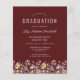 A beautiful watercolor floral border of wildflowers decorates the bottom edge of this trendy boho graduation party invitation. Customize the white text on a burgundy red background with the graduate's name in handwriting script; the school and class year in sans serif; and the date, venue, and RSVP details in serif font. The back of the card is solid burgundy.