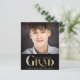 Budget option to announce your graduate's success to family and friends, this black modern graduation announcement features his or her favorite photo and "GRAD" written in bold trendy gold faux metallic foil typography. Easily add his or her name, school and class year.