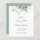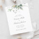 Beautiful affordable Save the date card featuring watercolor eucalyptus and gold leaves with calligraphy script.