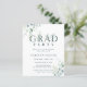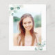 This budget graduation party invitation features painted watercolor eucalyptus and green leaves with botanical green letters and a photo on the back. For more advanced customization of this design, please click Customize Further link to change font, size, and color.