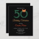 Budget elegant greenery 50th birthday party invitation. Perfect for a stylish feminine fiftieth b-day celebration. It features 5 and 0 digits made of green leaves and golden orange butterfly on the black background. Back of the invitation features butterfly and initials. You can easily personalize your invite using Zazzle online tools. If you need help in personalization of this card, don't hesitate to contact me via Zazzle.