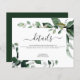 Budget Greenery Foliage Watercolor Spring Wedding Elegant and Modern Invitation Wedding Details Insert Card on White background - includes beautiful and elegant script typography with modern botanical leaves and greenery for the special Wedding day celebration.
