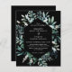 This Budget Botanical Leafy Wedding Invitations - features white handwritten and elegant script text, with leafy frame, rustic white twigs on the black background. The reverse side of this invitation is laconic black.