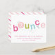 This bounce birthday party invitation features bouncing letters in a girlie color palette of hot pink, light pink, lime green and aqua with editable age in the O. A super fun, extra girlie take on a trampoline, gymnastics or bounce house party. This invitation is inspired by all the little girls who like jump, bounce and fly. Click edit to customize.