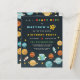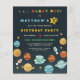 Boys Outer Space Rocket Birthday Party Invitations by Stonking Stuff. This design features cute children's planets, stars, and rocket images, and modern typography. As part of the budget selection here on Zazzle, these invitations do not come with envelopes nor do they fit snugly in a standard-sized envelope. The closest size is A6 but there will be a gap of approximately half an inch. If you don't mind the lack of snugness you could use such widely available A6 envelopes. Otherwise, this design can be transferred to a standard 5x7 format (which comes with envelopes) using the design transfer tool. As a rough guide, as of the time of writing, 100 budget invitations (including a volume discount) would cost around $39 whereas 100 standard 5x7 invites including envelopes would cost approximately $135. Your mileage may vary depending on Zazzle's available promo codes, site-wide sales, or changes in pricing.