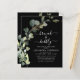 Budget Brunch and Bubbly Eucalyptus Black Greenery Succulent Botanical Watercolor Emerald Green Spring Wedding Bridal Shower Invitations on white background - includes beautiful and elegant script typography with modern botanical leaves and greenery for the special Bride to Be celebration.