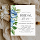 Budget Spring or Summer Eucalyptus and Blue & Blush Pink (Boy or Girl) Floral Rose Flowers Botanical Watercolor Greenery Wreath Wedding Bridal Shower Invitations on white background - includes modern beautiful and elegant script typography with modern botanical leaves and greenery for the special Bride to Be celebration.
