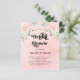 The perfect pairing of pink and gold. Decorated with small golden sparkles. The background is a soft blush pink, while the flowers are white with eucalyptus greenery. Personalize and add a name and party details to this elegant piece that will make your guests feel special.