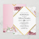 This bridal shower budget invitation features a printed gold effect geometric frame with floral elements in shades of pink and white flower blooms.