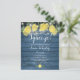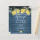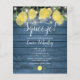 Featuring lemons greenery and pretty string lights on a blue rustic wood background, this fun bridal shower budget invitation can be personalized with your special event information. Designed by Thisisnotme©