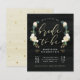 Elegant floral bridal shower invitations featuring "bride to be" in a handwritten font with peonies, roses, and foliage with gold foil leaves forming a wreath around it on a dark watercolor background. Perfect for spring garden-themed bridal showers. As part of the budget selection here on Zazzle, these invitations do not come with envelopes nor do they fit snugly in a standard-sized envelope. The closest size is A6 but there will be a gap of approximately half an inch. If you don't mind the lack of snugness you could use such widely available A6 envelopes. Otherwise, this design can be transferred to a standard 5x7 format (which comes with envelopes) using the design transfer tool. As a rough guide, as of the time of writing, 100 budget invitations (including a volume discount) would cost around $39 whereas 100 standard 5x7 invites including envelopes would cost approximately $135. Your mileage may vary depending on Zazzle's available promo codes, site-wide sales, or changes in pricing.