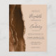 The left-hand edge of this elegant modern wedding invitation features a mocha brown watercolor agate border trimmed with faux gold glitter. The customizable text combines handwriting, copperplate and italic fonts in charcoal gray on a tan background. Add additional details on the back, along with a QR code to help your guests visit your wedding website.
