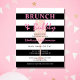 Black and White Stripe with Pink Brunch and Bubbly Pink glitter Champagne glass. Bridal shower invitation