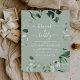 Budget Brunch and Bubbly Champagne Emerald and Sage Green Greenery Botanical Watercolor Spring Wedding Bridal Shower Invitations on white background - includes beautiful and elegant script typography with modern botanical leaves and greenery for the special Bride to Be celebration.