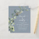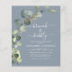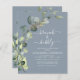 Budget Brunch and Bubbly Eucalyptus Dusty Blue Greenery Succulent Botanical Watercolor Emerald Green Spring Wedding Bridal Shower Invitations on white background - includes beautiful and elegant script typography with modern botanical leaves and greenery for the special Bride to Be celebration.